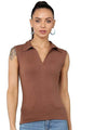 Women Collared Neck Brown Crop Top