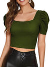 Women Puff Sleeve Mehndi Crop Top