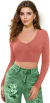 Women V-Neck Rose Peach Crop Top