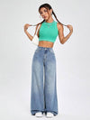 Women High Waisted Aquamarine Blue Jeans