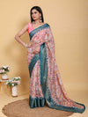 Color: Soft Pink with Multi-color Floral Print and Teal Blue Border