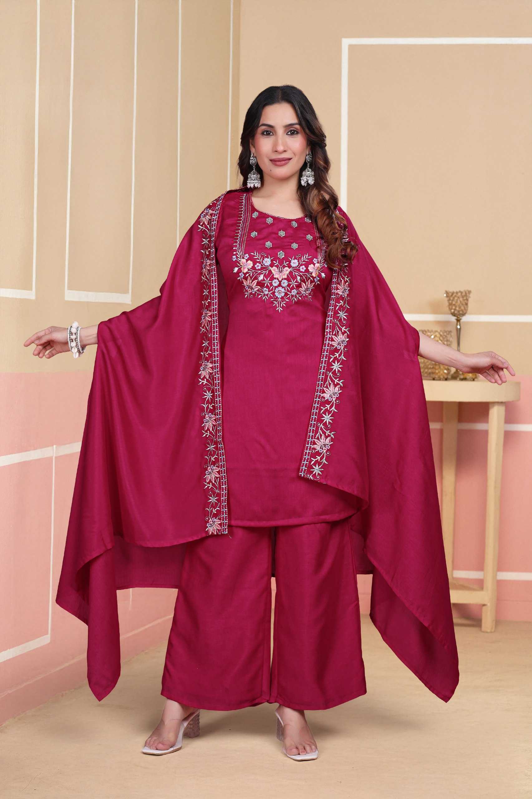 Vichitra Silk Kurti Bottom With Dupatta Embroidere...