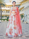 Step into timeless elegance with this beautiful white floral printed lehenga featuring a full flair silhouette and an adjustable waist with dori and tassels for the perfect fit. Paired with a floral printed blouse enhanced with delicate dori and tassels, this outfit radiates charm and grace. The look is completed with a soft net dupatta adorned with sequin lace borders, adding just the right amount of sparkle for festive and special occasions. Perfect for weddings, parties, and celebrations – a blend of beauty, comfort, and style!